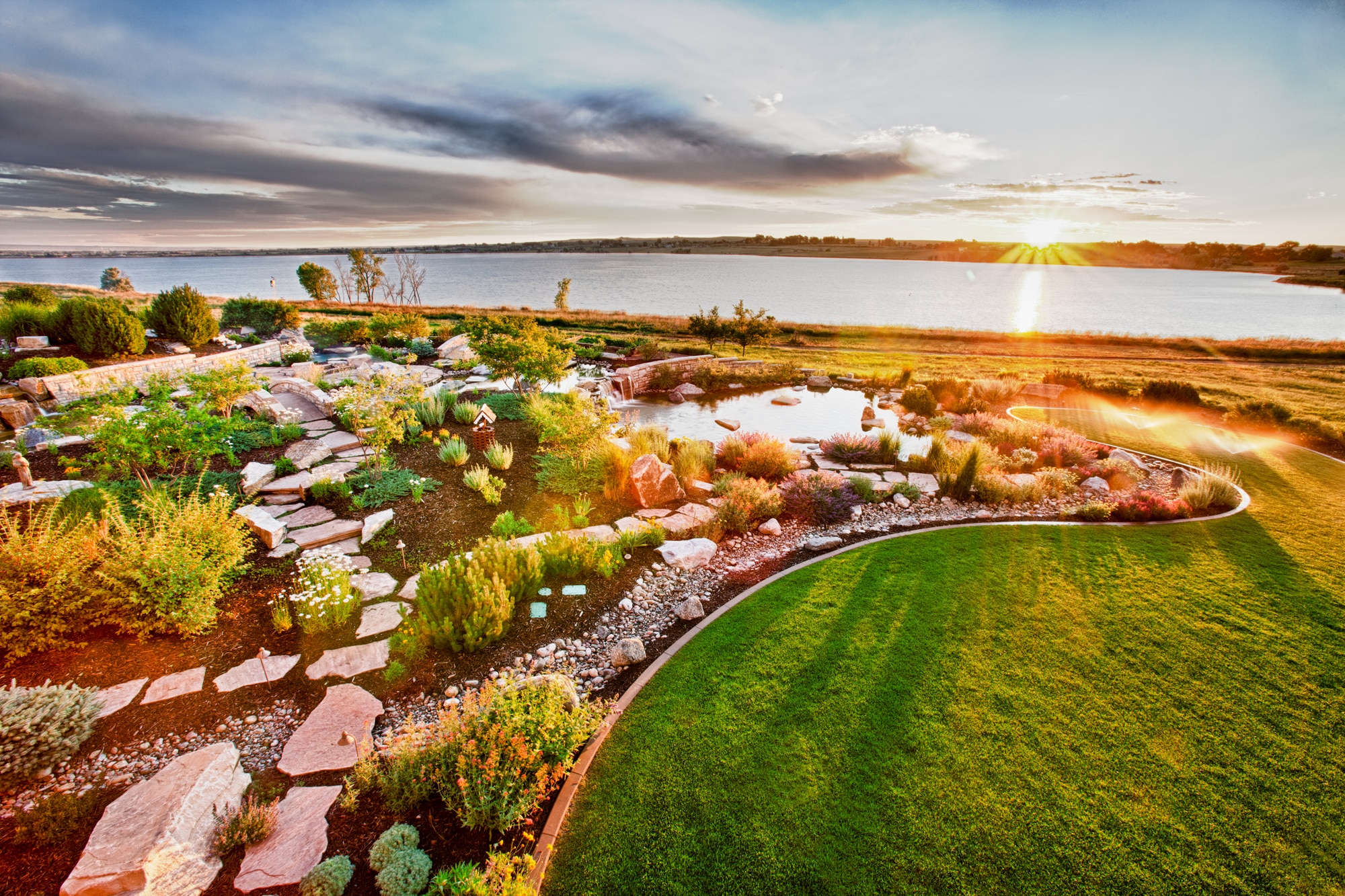 This project used natural and formal elements to create a truly unique and custom landscape reminiscent of a botanic garden. An oversized architectural sandstone waterfeature stands alone in the front as a showpiece, while meandering flagstone staircases and walkways lead to several destinations throughout the back of the property.