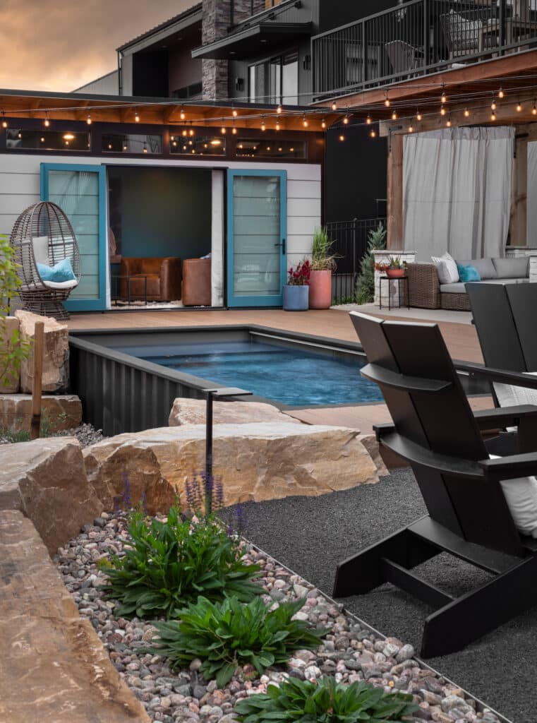 The shipping container pool redefines outdoor leisure. Crafted from a repurposed shipping container, the pool not only stands out with its industrial aesthetic but also showcases sustainability and creativity. This striking feature seamlessly integrates into the landscape, offering a unique and modern twist on traditional swimming pools.